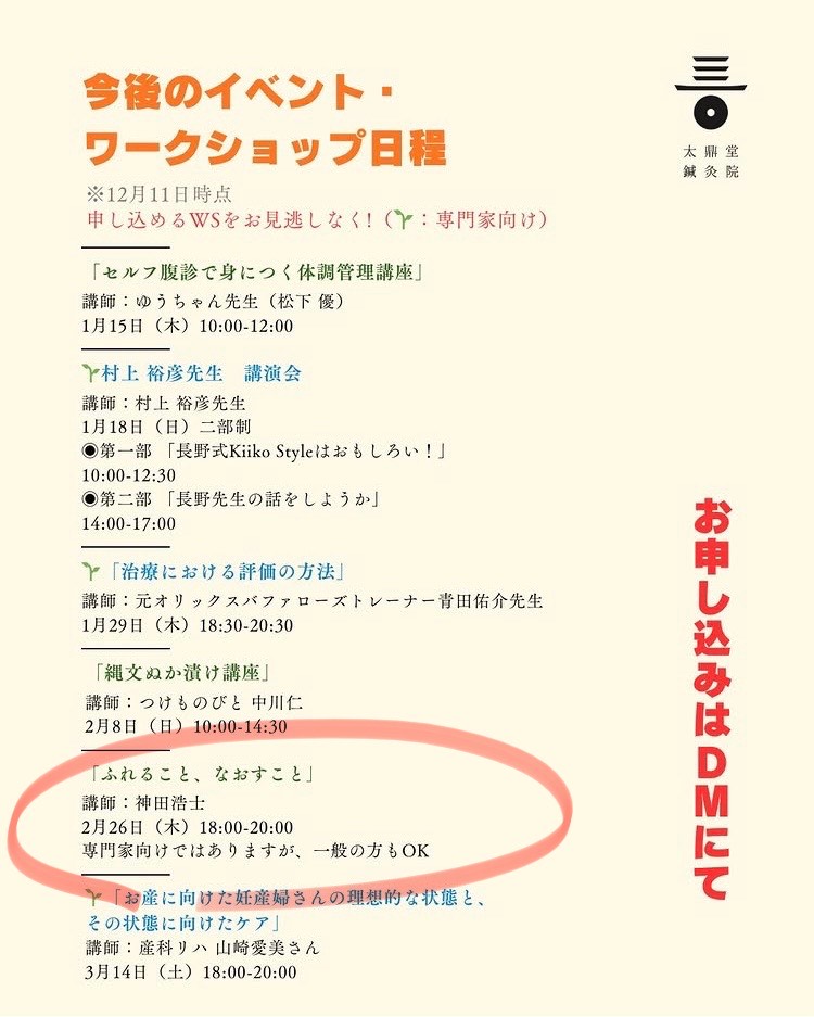 今回はそのご縁から、横浜・鶴見で開業されている鍼灸師の先生からワークショップのご依頼をいただきました。